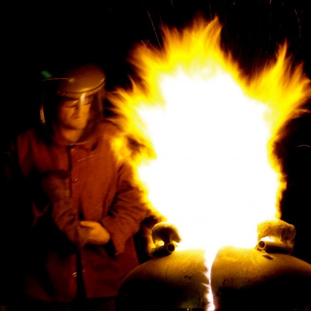 In partnership with Artworks Trenton and our friends and supporters, AbOminOg Intl. Arts Collective transported its iron foundry to the site of the former Roebling Wire Works in Trenton and threw-down a spectacular, live cast-iron pour at the 2012 Art All Night Trenton event.